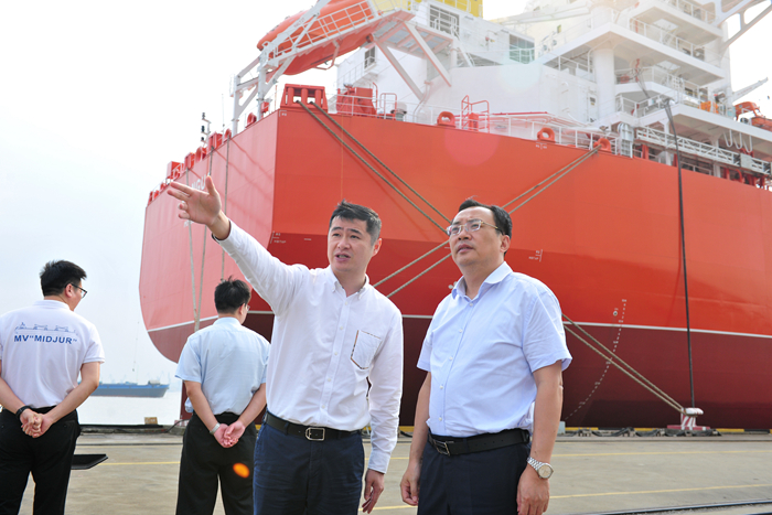 在新?lián)P子造船生產(chǎn)現(xiàn)場,張書記詳細(xì)了解了造船生產(chǎn)流程和現(xiàn)場在建船舶的產(chǎn)品結(jié)構(gòu)、客戶市場分布,他對富有揚子江特色的成本控制、生產(chǎn)經(jīng)營、質(zhì)量管理等方面的亮點給予了充分肯定。