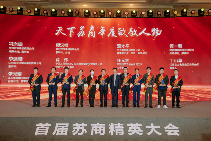 在“2022年度天下蘇商系列評選活動”中,集團創(chuàng)始人任元林先生(左三)榮獲“天下蘇商年度致敬人物”稱號。