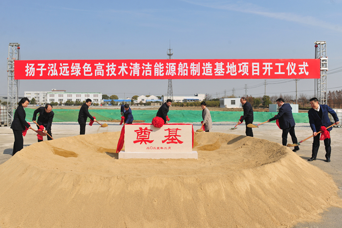 2月19日,揚子泓遠綠色高技術清潔能源船制造基地項目(以下簡稱“揚子泓遠項目”)舉行奠基儀式,正式開工建設。靖江市委副書記、市政府市長申強主持儀式并致辭,我集團董事長、總經理任樂天現(xiàn)場致辭。泰州市委書記姜冬冬宣布項目開工。泰州市委副書記、市長萬聞華,市委常委、常務副市長沈峻峰,市政府秘書長包亞,靖江市政府、人大、政協(xié)主要負責同志出席儀式,并為揚子泓遠綠色高技術清潔能源船制造基地項目培土奠基。