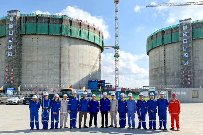 該項目單臺LNG儲罐拱頂重量達463噸,氣壓頂升作業(yè)屬超過一定規(guī)模的危險性較大的分部分項工程,技術(shù)難度與風(fēng)險管控要求極高。集團統(tǒng)籌資源,聯(lián)合中國五環(huán)工程有限公司、中國核工業(yè)第五建設(shè)有限公司,通過對氣頂升五大核心系統(tǒng)聯(lián)合檢查驗收和全流程精準調(diào)控,最終實現(xiàn)拱頂安全平穩(wěn)就位,充分體現(xiàn)了集團在大型能源基礎(chǔ)設(shè)施建設(shè)領(lǐng)域的專業(yè)化管理能力和"造船+"管理體系優(yōu)勢。