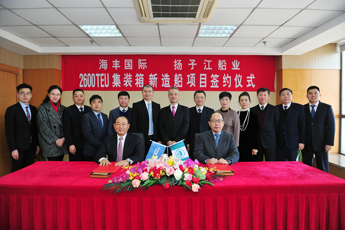 我集團(tuán)與海豐國際本年度第三次合作,12月19日,雙方共同簽署6+2+2艘2600TEU集裝箱新造船建造合同。集團(tuán)董事長任樂天先生,集團(tuán)副總經(jīng)理杜成忠先生、張濤先生,海豐國際董事局副主席兼首席執(zhí)行官楊現(xiàn)祥先生攜夫人,海豐航運(yùn)集團(tuán)副總裁肖森元先生,上海海事大學(xué)校長陸靖先生,上海海事大學(xué)商船學(xué)院黨委書記曹紅奮女士,上海海事大學(xué)商船學(xué)院院長肖英杰先生,上海船舶研究設(shè)計院院長呂智勇先生等共同見證新訂單成功簽約。