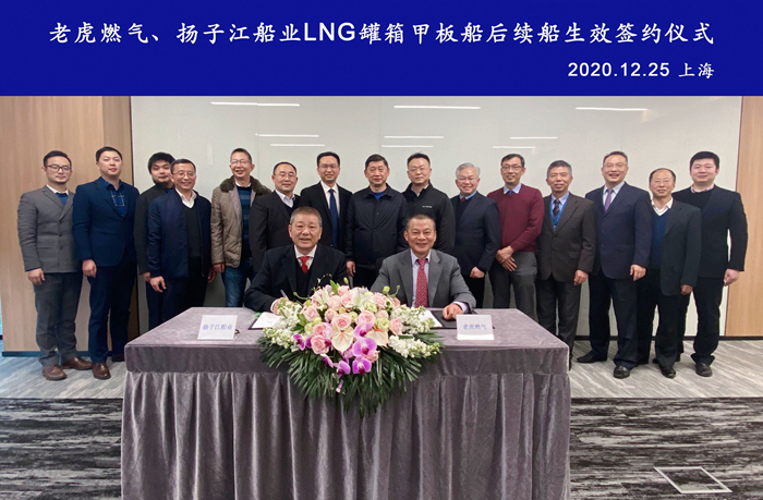 今年6月我集團(tuán)與老虎燃?xì)夂炇鹆?+8艘690FEU LNG罐箱甲板船建造合同,12月25日8艘option船中的第一批2艘生效簽約儀式在上海舉行。