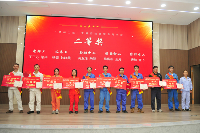 9月4日,揚(yáng)子江船業(yè)集團(tuán)2024年“揚(yáng)船工匠”主題勞動競賽總結(jié)表彰會在集團(tuán)行政大樓多功能廳隆重舉行。集團(tuán)副總經(jīng)理兼新?lián)P子造船總經(jīng)理杜成忠、新?lián)P子造船副總經(jīng)理倪榮 、新?lián)P子造船總經(jīng)理助理茆宏兆、揚(yáng)子鑫福造船總經(jīng)理助理劉銀君,以及各造船子公司黨支部、工會領(lǐng)導(dǎo)、生產(chǎn)管理部領(lǐng)導(dǎo)、相關(guān)競賽承辦車間部門領(lǐng)導(dǎo)、獲獎(jiǎng)職工代表和裁判員代表等百余人參加會議。