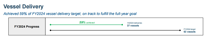 In the first half of 2024, the Group delivered a total of 37 new vessels, achieving 59% of its annual delivery target of 63 vessels.